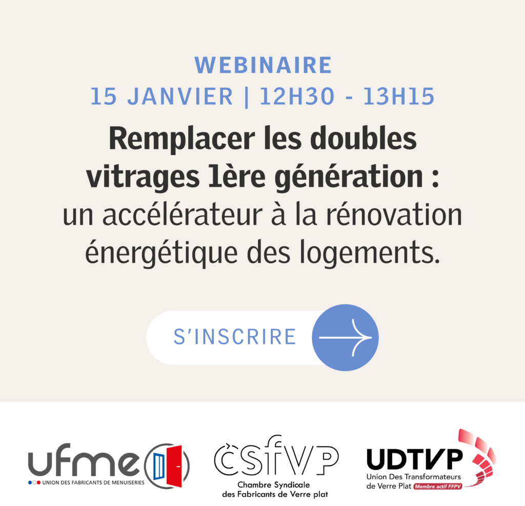 La filière française Portes et Fenêtres et la filière du verre vous convient à un webinaire consacré à l’état du parc existant en France et aux enjeux qu’il représente pour la performance énergétique des bâtiments.