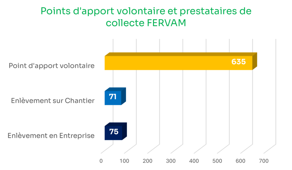 Près de 780 Points d’Apport Volontaire (PAV) et prestataires de collecte répartis sur l’ensemble de la France.